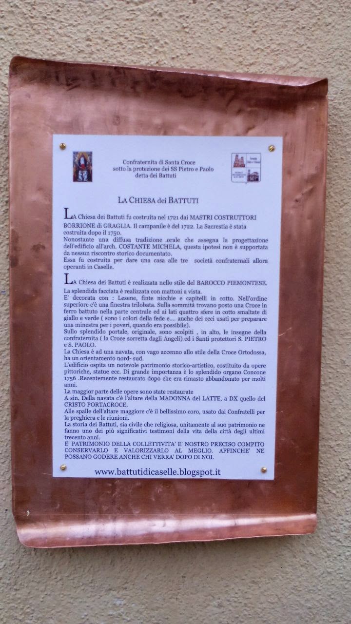 Il prezioso strumento della Chiesa della Confraternita di Santa Croce di Caselle Torinese (TO), restaurato di recente dai bravi organari Dell’Orto & Lanzini di Dormelletto (NO) per la parte strumentale e dalle belle e brave restauratrici Paola Ponzetto e Gabriella Zordan dello Studio Malachite di Orio Canavese (TO), per quanto riguarda la cassa dell’organo e la cantoria, venne costruito verosimilmente negli anni 1755/1756 dai Regi Organari Fratelli Giovanni Battista (Asti 1716 – Torino 1791 ca.) e Francesco Maria Concone (Asti 1713 – Torino 1795) di Asti residenti in Torino, i quali reclamarono verso la Confraternita le ultime rate dei pagamenti il 4 dicembre 1763.
